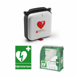 Paketlösning med CR2 hjärtstartare för placering utomhus max – 20 grader med larmat skåp. Läs mer.