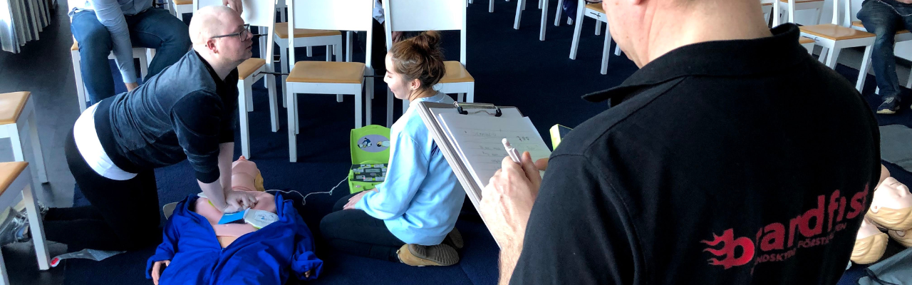Vi satsar på kvalitet så alla får öva med verklighetstrogna HLR-dockor och träningshjärtstartare. Alla våra instruktörer är certifierade av Svenska Rådet för hjärt-lungräddning. Utbildningen hjälper er att uppfylla kraven i Arbetsmiljöverkets föreskrift om första hjälpen AFS 1999:7 och innehåller de senaste riktlinjerna för utbildning i HLR.