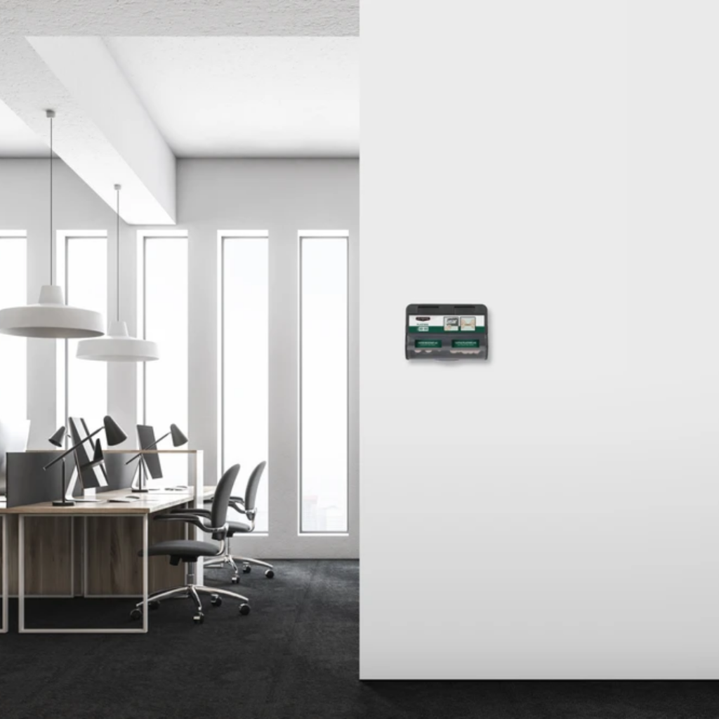 Plåsterstationen är framtagen för att göra det enkelt att snabbt hitta rätt plåster på ett hygieniskt och smidigt sätt. Den monteras enkelt på väggen och placeras väl synlig, så att den är lätt att komma åt även i stressiga situationer.