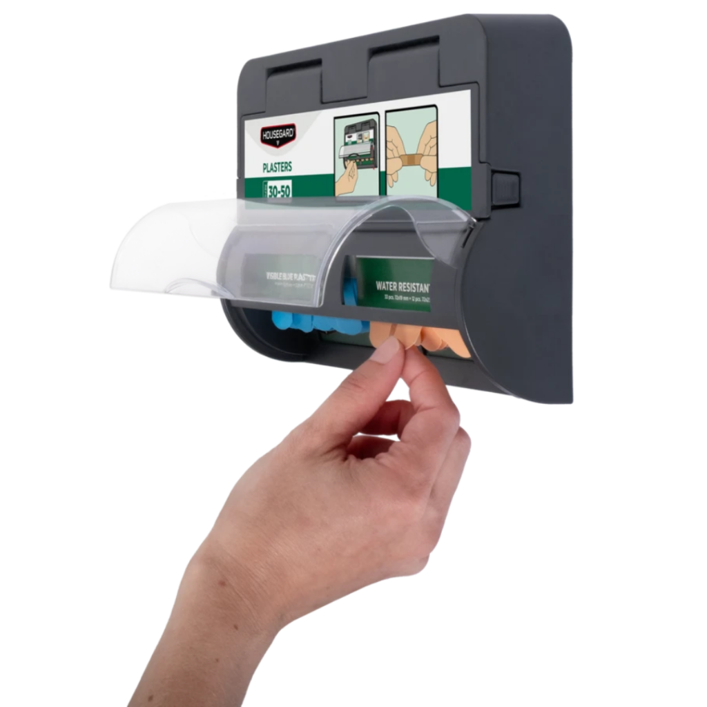 De blå, väl synliga plåstren används i arbetsmiljöer där sårskyddet snabbt ska kunna upptäckas vid visuell kontroll. Den tydliga färgen gör dem särskilt lämpliga inom livsmedelsproduktion, laboratorieverksamhet och andra kontrollerade miljöer där hygienkrav och spårbarhet är en naturlig del av arbetet. Plåstren är kompatibla med Housegard första hjälpen stationer samt andra fabrikat.