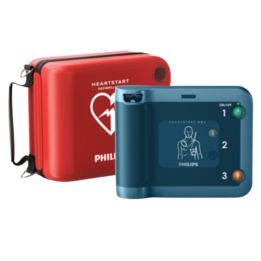 En komplett paketlösning med Philips FRx hjärtstartare för placering inomhus med larmat skåp.