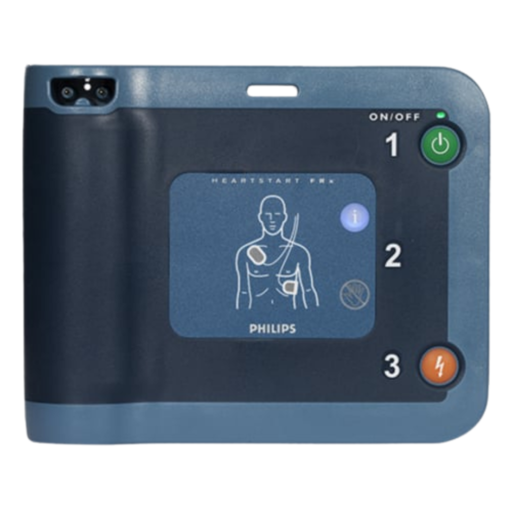 Utöver en tydlig på/av-knapp och en röd stötknapp är Philips HeartStart FRx utrustad med en informationsknapp. Om du trycker på den under en insats får du ytterligare vägledning för att utföra korrekta bröstkompressioner och inblåsningar.